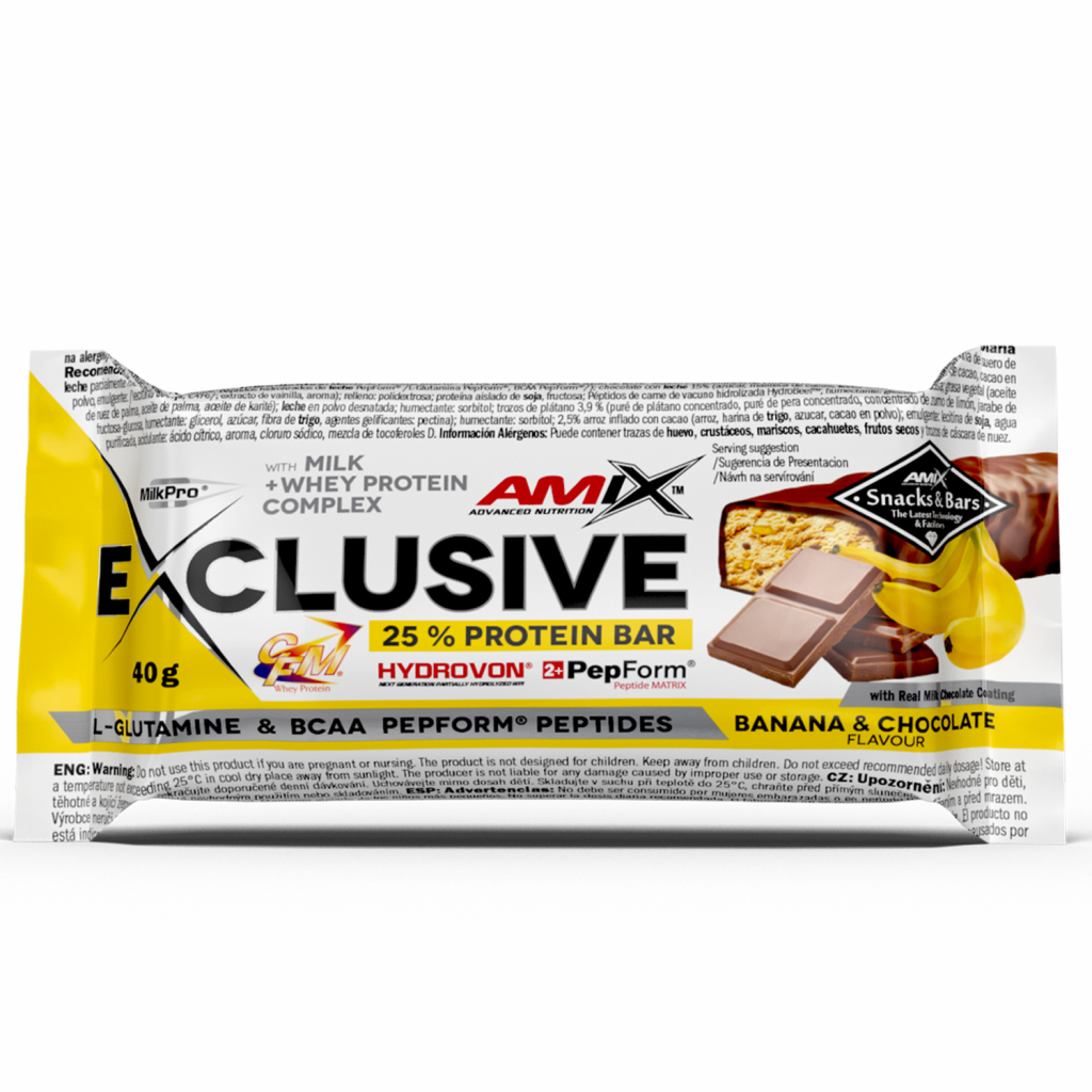 A Exclusive Protein Bar da Amix Nutrition é uma barra proteica equilibrada, criada para fornecer nutrição de qualidade, recuperação muscular e saciedade prolongada num formato prático e saboroso.