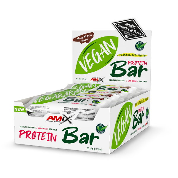 A Vegan Protein Bar da Amix Nutrition é uma barra proteica 100% vegetal, criada para quem procura uma alternativa nutritiva, saborosa e sem ingredientes de origem animal.