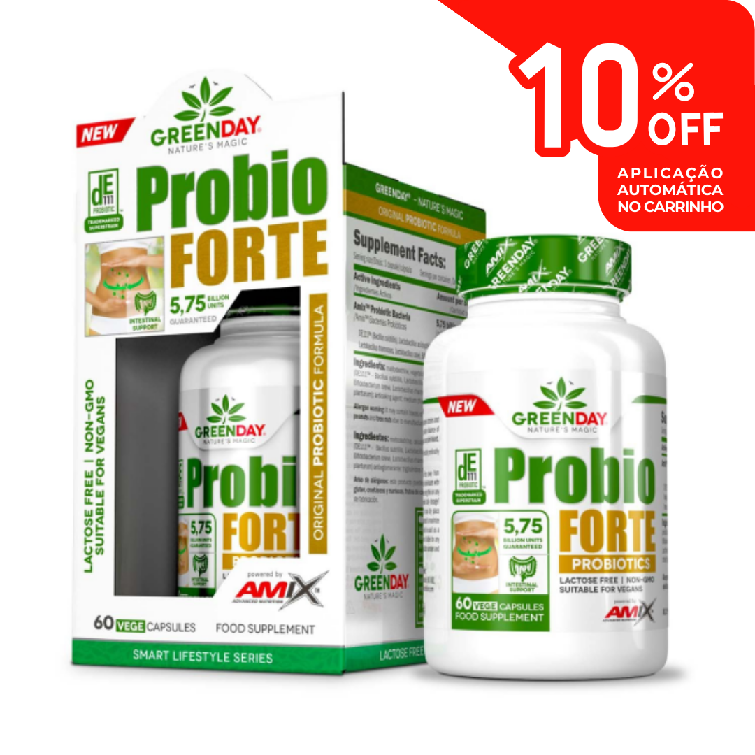 Os probióticos desempenham um papel fundamental na digestão, absorção dos nutrientes, função imunitária e regulação do trânsito intestinal. A formulação do Probio Forte, livre de prebióticos, é ideal para quem procura apenas bactérias probióticas, evitando fibras que por vezes causam desconforto em pessoas mais sensíveis.