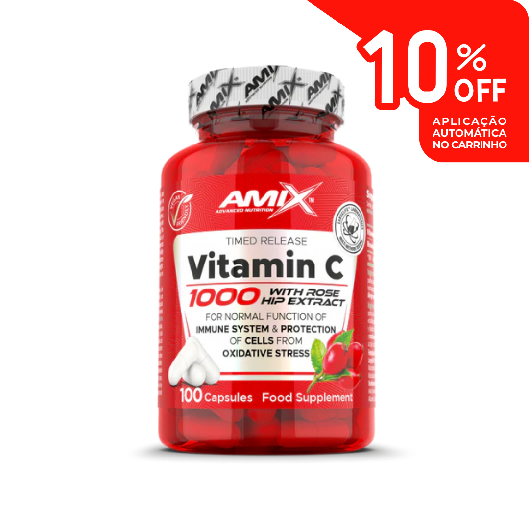 O Vitamin C 1000 mg da Amix Nutrition é um suplemento premium que combina 1000 mg de vitamina C (ácido ascórbico) com 25 mg de extrato de rosa-mosqueta, uma fonte natural rica em antioxidantes. Esta fórmula foi desenvolvida para reforçar o organismo diariamente, apoiando o sistema imunitário, a produção de energia e a proteção das células contra o stress oxidativo.