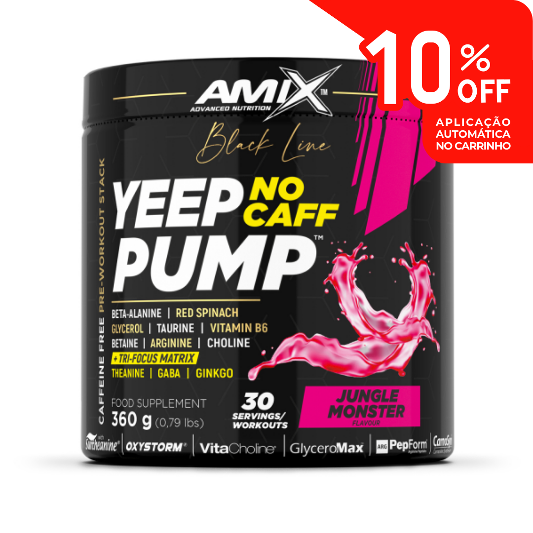 O Amix Nutrition Black Line Yeep Pump NO CAFF é um pré-treino sem cafeína de alto desempenho, desenvolvido para proporcionar pump muscular intenso, foco mental estável e resistência muscular, sem estimulação excessiva. A sua fórmula avançada combina aminoácidos, extratos patenteados, glicerol, colina e vitamina B6, oferecendo um suporte completo para treinos exigentes — ideal para quem treina à noite ou é sensível a estimulantes.