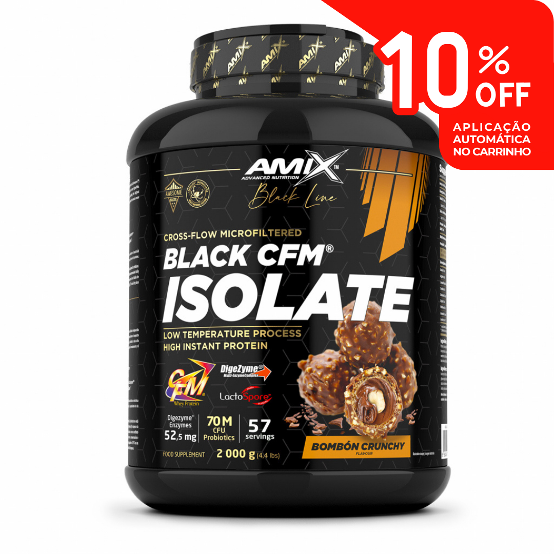 Black CFM® Isolate da Amix Nutrition é uma proteína isolada de soro de leite de qualidade premium, desenvolvida com a mais avançada tecnologia de microfiltração de fluxo cruzado (CFM®). Este processo assegura uma pureza excecional, absorção ultra-rápida e concentração máxima de proteína por dose, com níveis mínimos de gordura, açúcar e lactose.